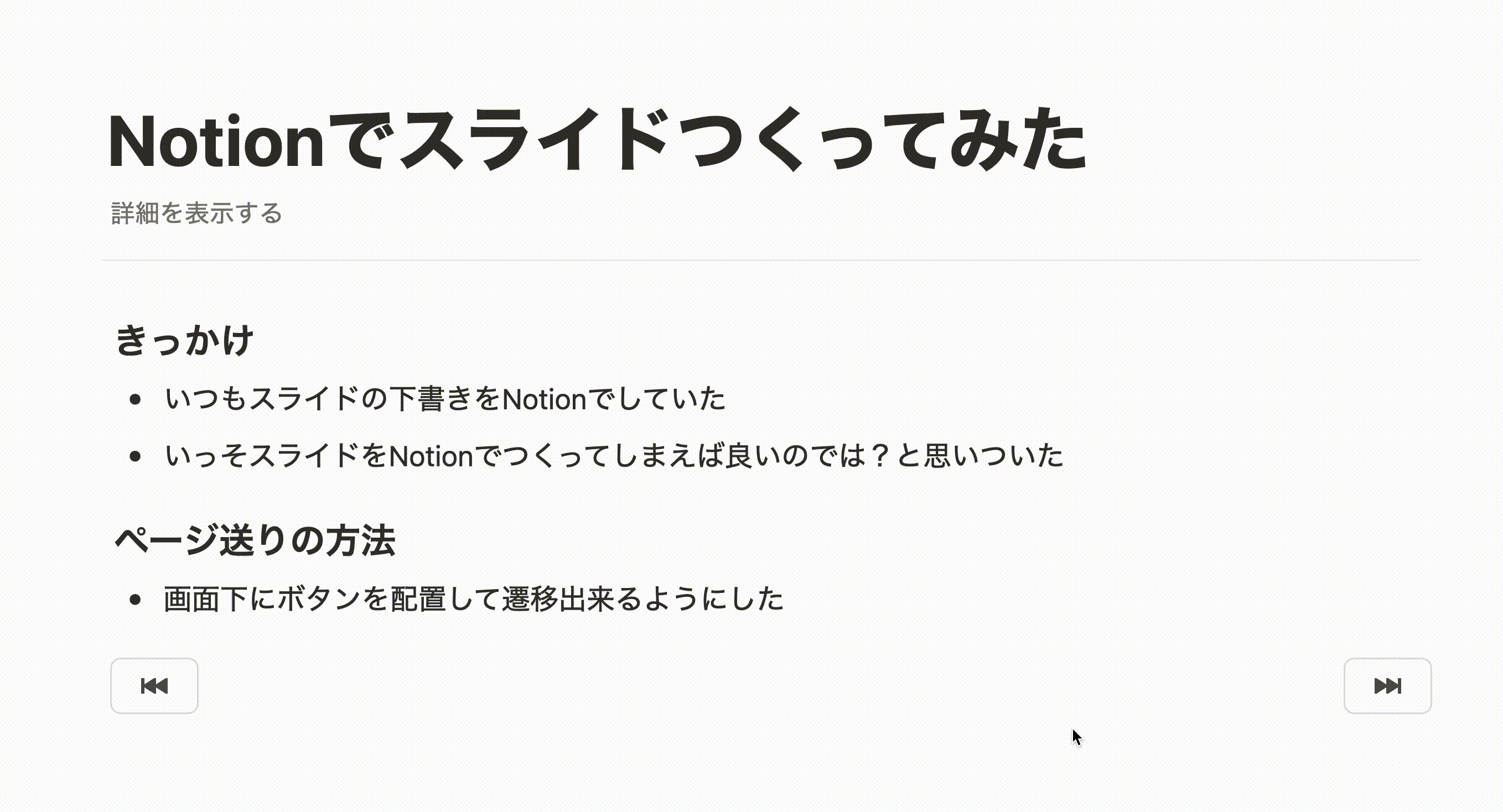 仕事でNotionをよく使うのですが、ふとNotionでスライドをつくれるのでは?と思ったのでつくってみました。思ったよりいい感じのものができたので、ご紹介します。