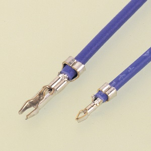 圧着したコンタクトを基板に直付けしたコネクタに差し込むタイプのコネクタです。