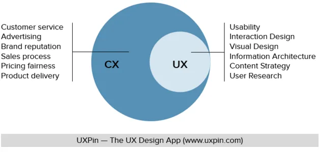 CXは、アプリなどの特定の製品を含む、ブランドのすべてのチャネルでのお客様の体験を意味します。CXは、同じブランド内のすべてのチャネルとすべての製品を包括する概念であり、ユーザーがそれらに対してどのように感じているかを表しています。