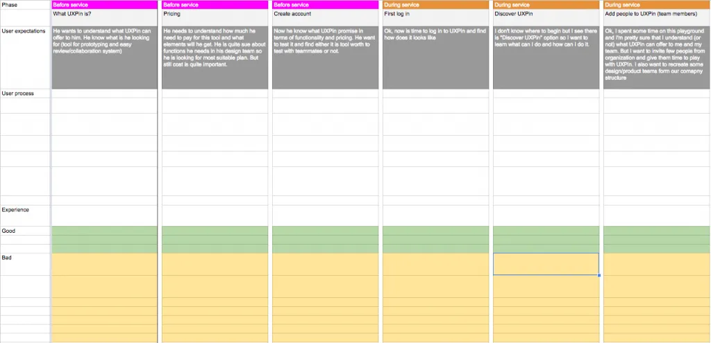 チーム間のコンテクストを提供する - カスタマーサービスやサプライチェーンのチームが製品デザインを決定すべきではありませんが、製品デザインのプロセスには必ず参加してもらう必要があります。デザイナーは、実現可能性について彼らの意見を求め、彼らの役割が製品の約束を果たすためにどのように役立つか(そして問題が生じた場合にどのように解決できるか)を説明する必要があります。そして、カスタマージャーニーマップは、すべての人が体験全体を視覚化するのに役立ちます。