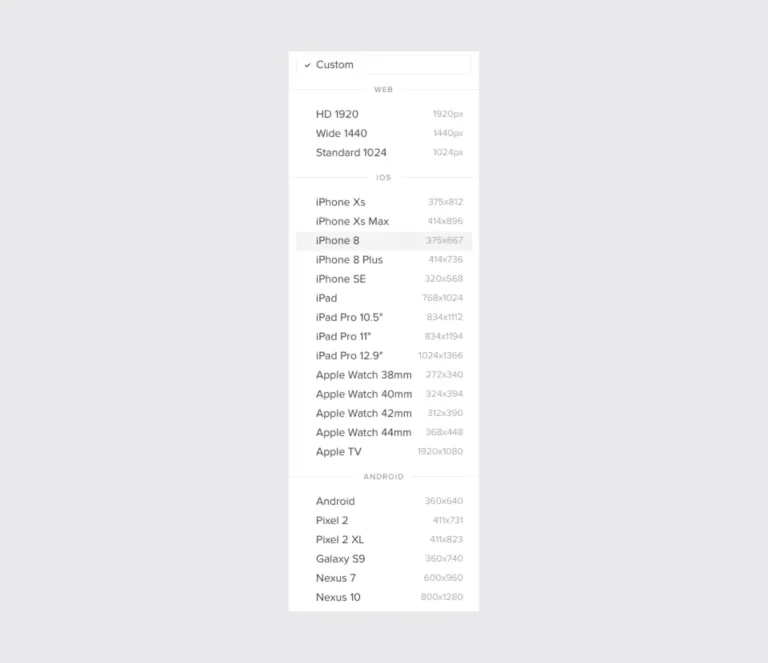 これらのプリセットは、適切な画面サイズをレイアウトしてくれるので、コンテンツだけを念頭に置いてワイヤーフレームを作成することができます。