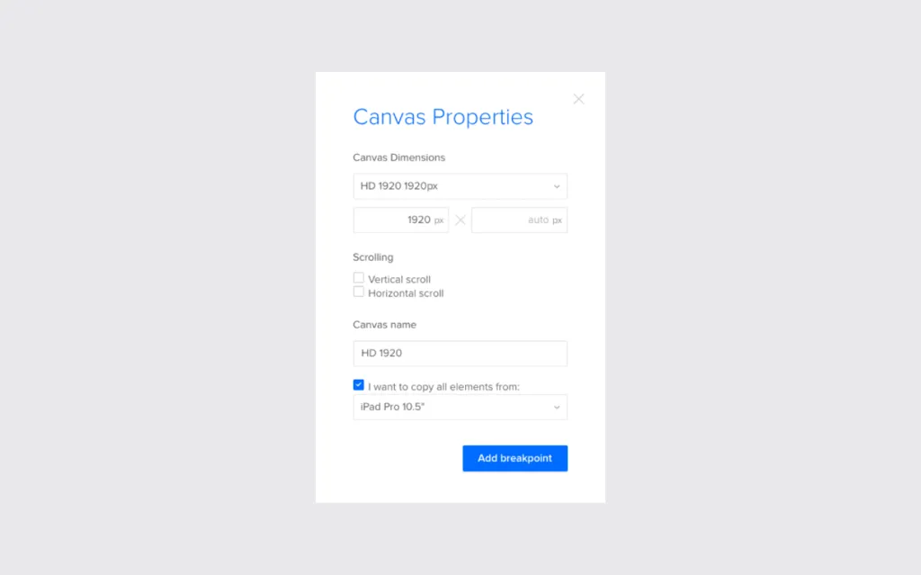 いつものように、レイアウトを最も効率的に構造化するためには、ワイヤーフレーム化が初期段階で推奨されます。ワイヤーフレームやプロトタイピングの際には、レスポンシブブレークポイントメニューを使用して、最小の画面サイズから始めて、異なる画面サイズに移動するプロセスを合理化します。