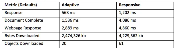 しかし、クライアントや会社が予算を持っている場合は、キャッチポイントが実施したテストによると、アダプティブの方が良い選択かもしれません。彼らはWordPressで2つのサイトを構築し、1つは標準のWP TwentyFourteenレスポンシブテーマを使用し、もう1つはWiziappと呼ばれるプラグインを使用しています。
