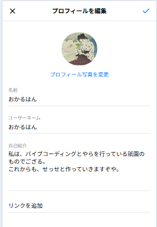- プロフィール編集ボタンを押すと