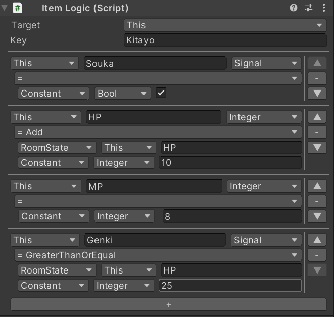 なお、上の画像のSoukaのようにConstant BoolのONの値を入れておくと、Signalメッセージが送れて便利です。コレはかなり使います。
