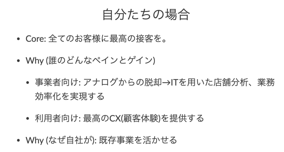 そもそもなぜ作っているのか、作ったものがどのようなものでないといけないかが説明を受けて非常にクリアになったと思います。また、セールスの知識があまりないのでそこの紹介も非常に勉強になりました。