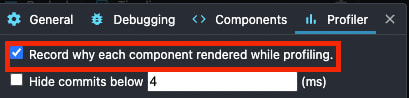 チェックを入れると、コンポーネントの各バーを指定した際に、コンポーネントがレンダリングされた理由が表示されます。