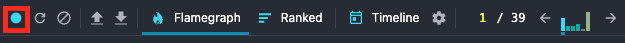 プロファイリングを開始する場合は記録ボタンをクリック。プロファイリングを終了する場合は停止ボタンをクリック