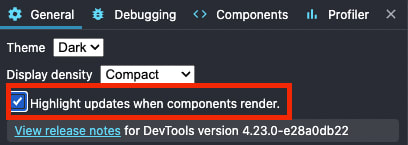 チェックを入れると、コンポーネントの各バーを指定した際に、コンポーネントがレンダリングされた理由が表示されます。