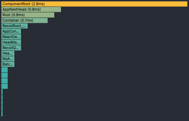 • 各バーに表示されている時間はそのコンポーネント自体をレンダリングするのにかかった時間と、子コンポーネントをレンダリングするのにかかった時間の合計を表します。