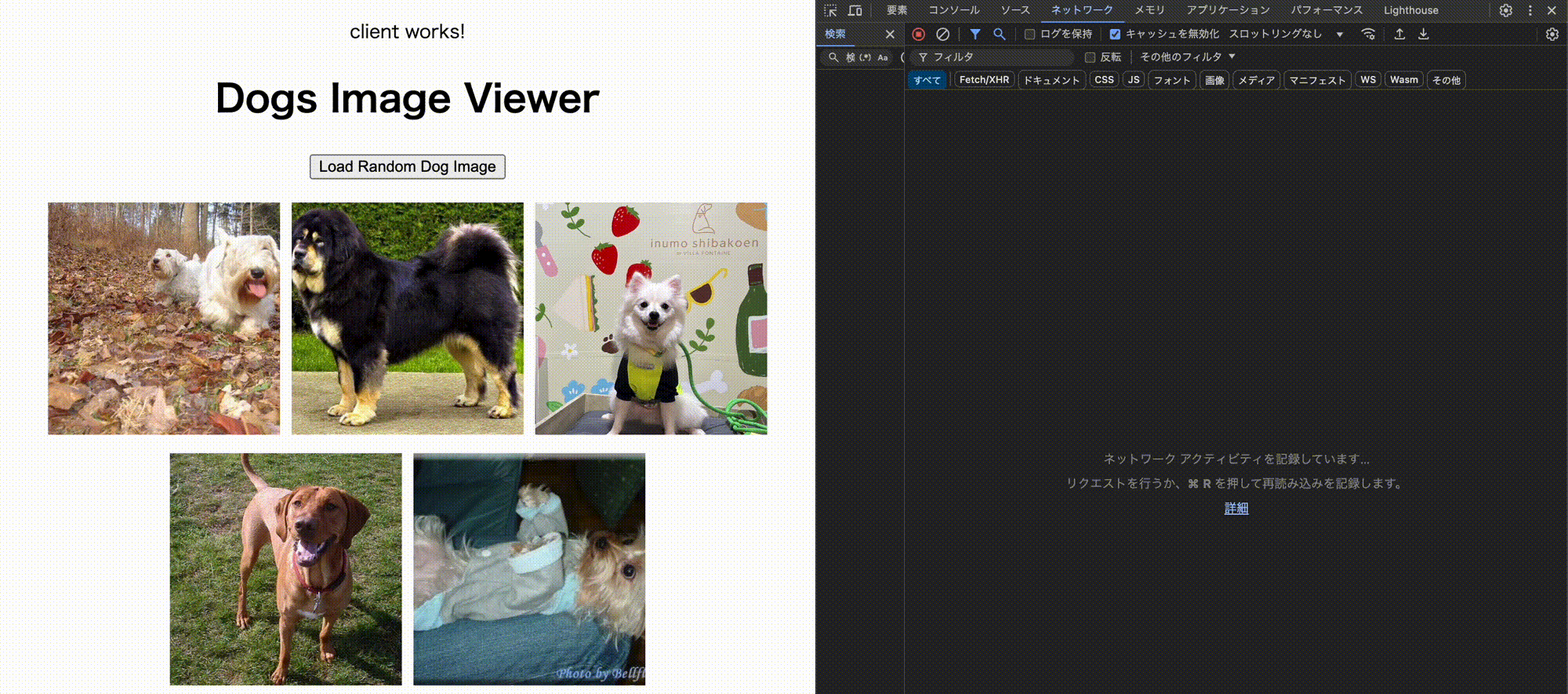 - ボタンをクリックするたびにブラウザからAPIサーバーへリクエストが実行され、画像が変わる
