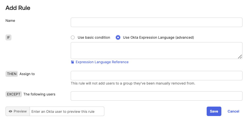 OktaのグループルールのUse Okta Expression Languageオプションを使うことで、グループルールを直接設定することも可能です。TerraformからOktaのグループルールでグループの親子関係を管理するの記事でも少し触れているので参照してください。