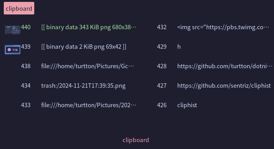 clipboardの履歴はcliphistを採用した。こちらもrofiに対応したワンライナーが書いてあるので楽に導入できる