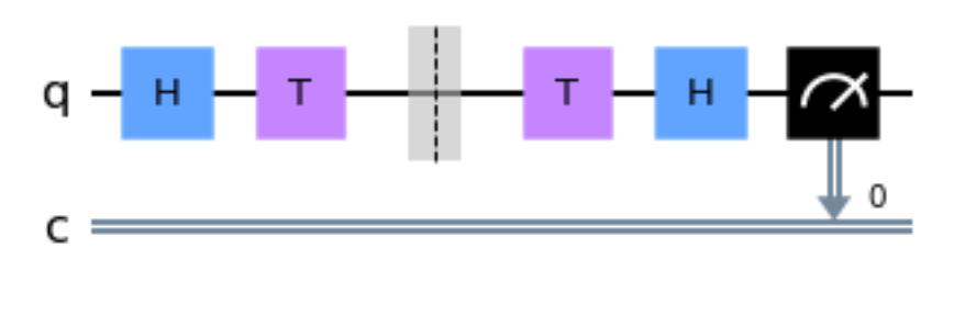 設問の量子回路には H -> T -> barrier -> T -> Hが作用しています!