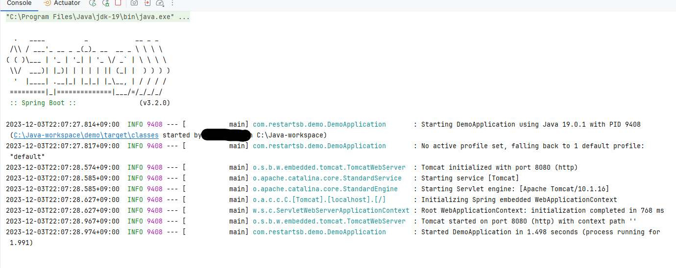 \src\main\resourcesに banner.txt を作成し、そのファイル内の文字がアプリ実行時のコンソールに表示される。