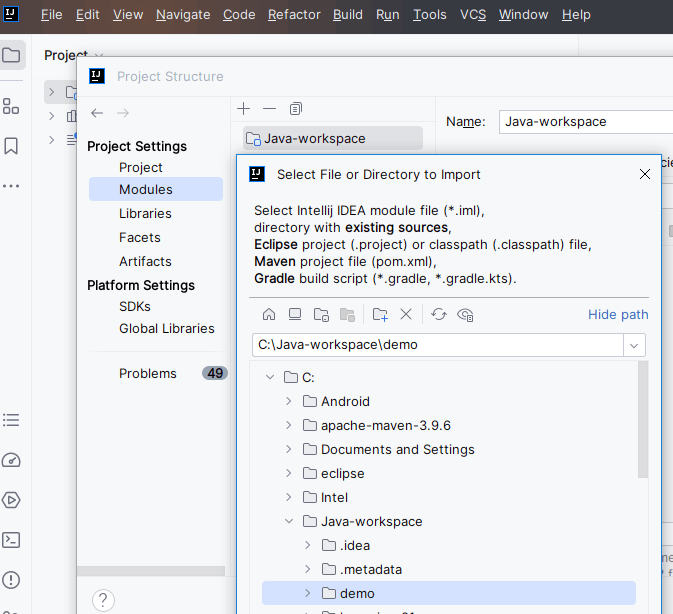 「File」→ 「Project Structure」→ 「import」