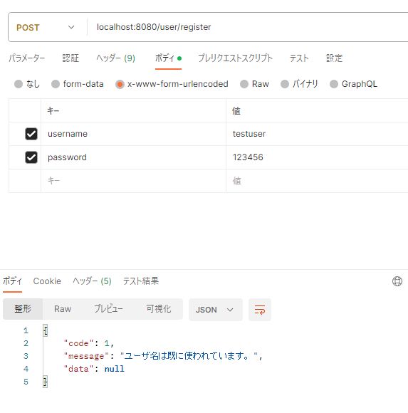 1.ユーザ名は既に使用されているかをチェック