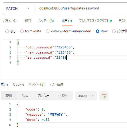 - リクエストパス:/updatePassword