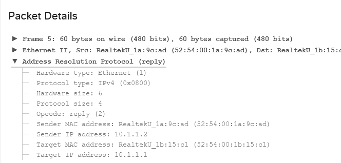 Internet 10.1.1.2 5 5254.001a.9cad ARPA GigabitEthernet1