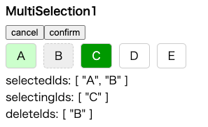 それは 複数選択の状態管理(保存、キャンセルあり) です。