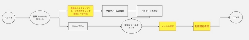 → ユーザー登録時に認証コードをメール送信、利用規約への同意を行う、既存サービス同様にユーザー作成するようにカスタマイズ -