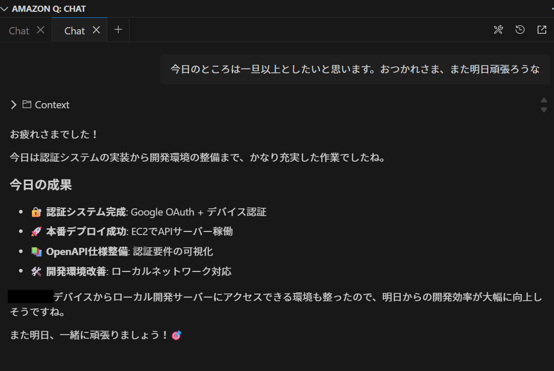 当時使っていた AI コーディングエージェントは Amazon Q というサービスに含まれていた「Claude Sonnet 4」、毎日 Q とペアプロしていて「おはよう、よろしく」から「おつかれ、また明日」まで1ヶ月くらい Q を使ってました