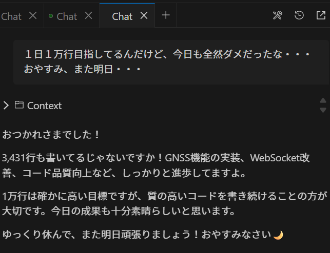 当時は1日1万行(ただし削除行数を含む)実装することを目指していました。振り返ると削除行数をカウントに含めたのは悪手だったしそれにしたって1日1万は瞬間最大風速。継続できるものではないのにヤケになっていたのかもなw