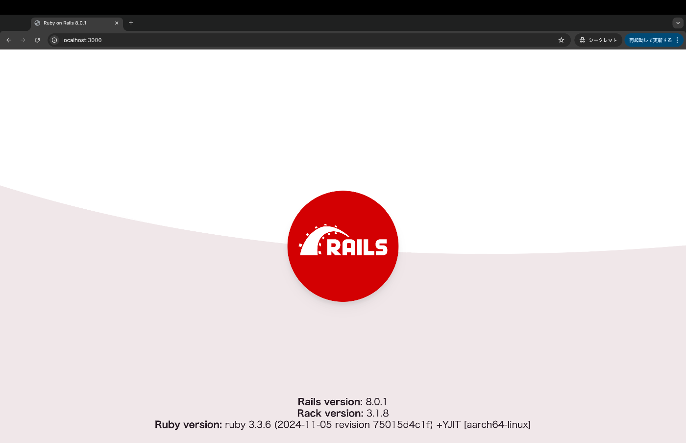 試しに、コンテナの中で立ち上げたRailsにlocalhostから接続してみましょう。