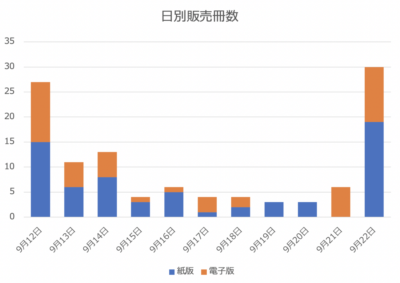 初日が頒布数のピークと予想していたので、嬉しい誤算でした。