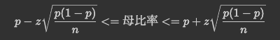 母比率の区間推定は、以下の計算式から求められます。