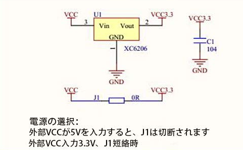 すると、確かに J1 を 3.3V/5V に切り替えるジャンパが存在する説明がありました。