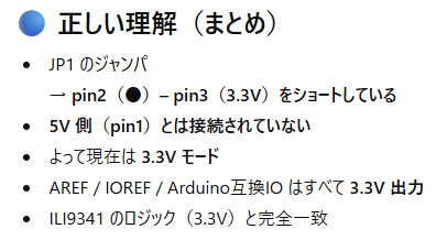 この設定こそが参考書の「JP1 の IO 電圧設定」だったらしい。