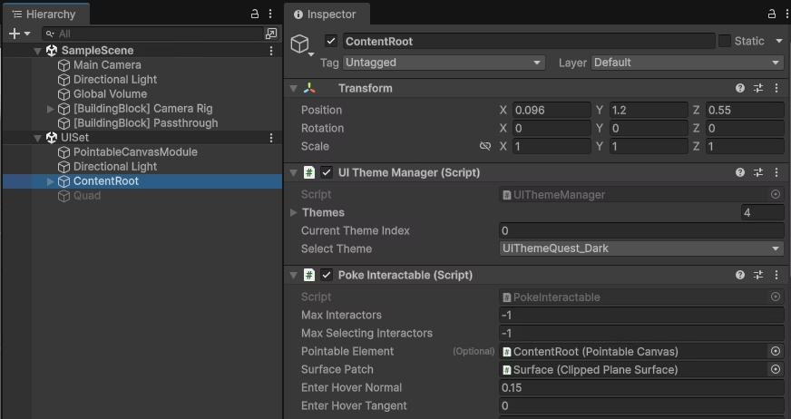 MetaQuest3アプリのUI作成(MetaXRInteractionSDK)