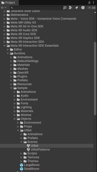 この中のMetaXRInteractionSDK/Runtime/Sample/Objects/UIset/Scenes