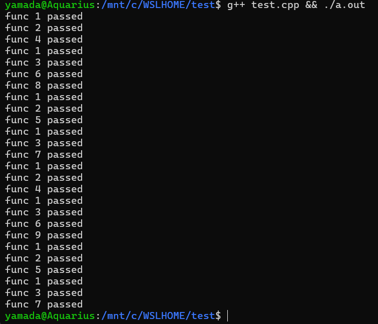 printf("func %d passed\n",i);