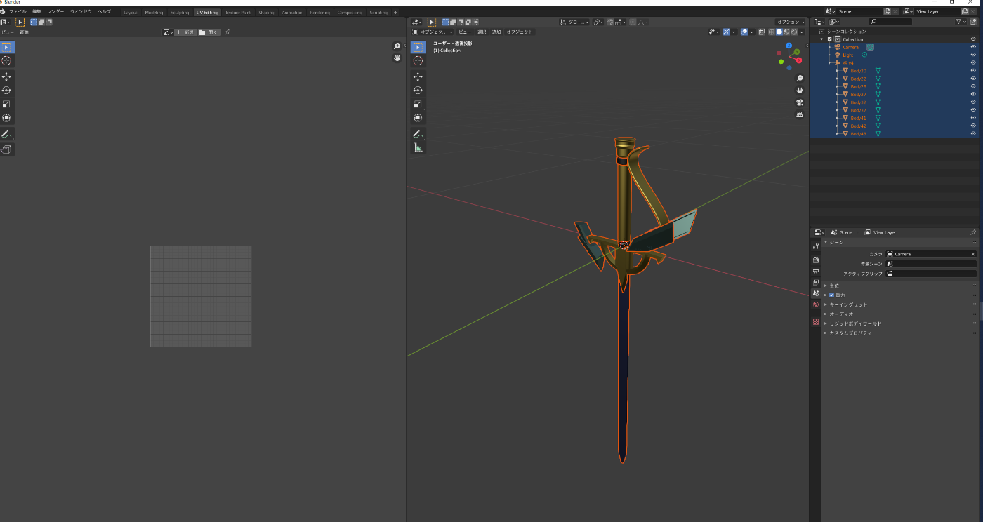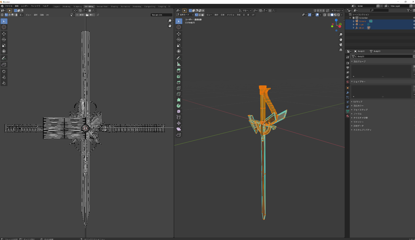 ※ここで引っかかってしまったら、「Blender シャープ UVマッピング」などで調べてみてください。