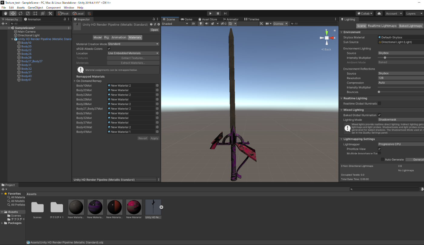モデル自体は一つ前の手順でインポートできましたが、テクスチャはインポートされていません。そのため、テクスチャを別途個別で割り当ててあげる必要があります
