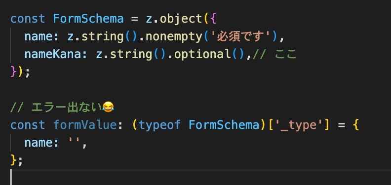 name: z.string().nonempty('必須です'),