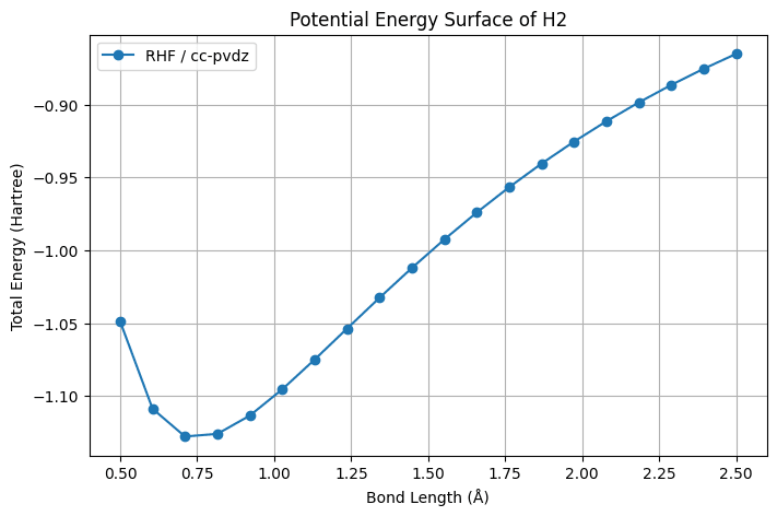 実践的な例として、「水素分子(H₂)の原子間距離を変化させながらエネルギーを計算し、ポテンシャルエネルギー曲面(PES)を描く」 というタスクをやってみます。
