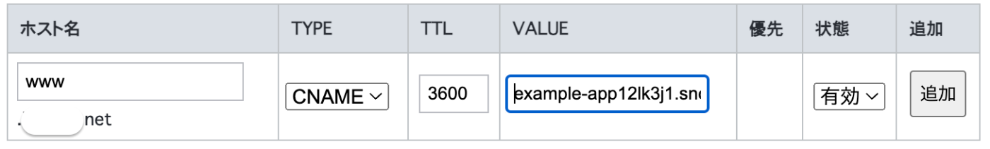 4. CNAMEレコードをDNS設定で追加する