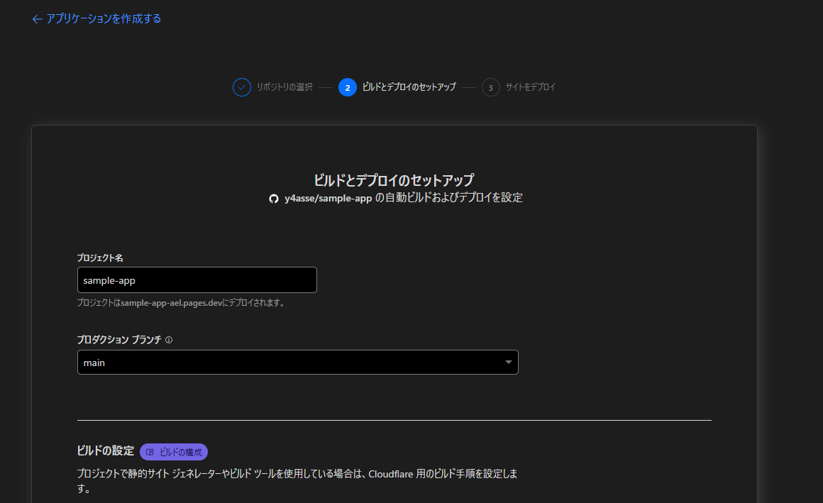 Cloudflare Pagesのサイトにアクセスして設定します。