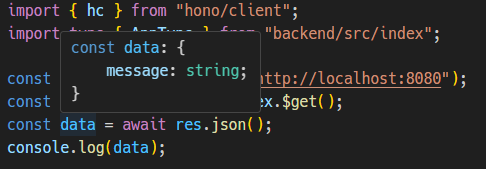 HonoのRPC機能を使用することで、このdata