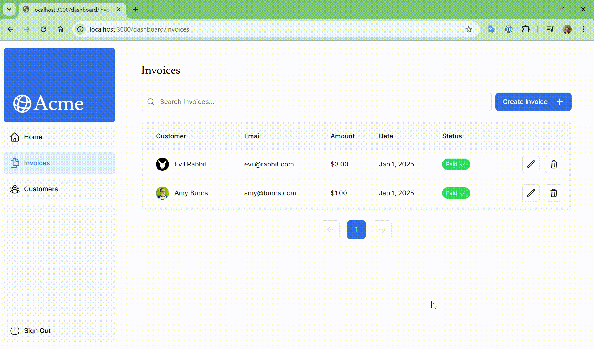 ページ層に、メインで表示したいコンポーネントである<Table />の親としてメッセージコンポーネントを設定します。メッセージ表示を実際に行うUIコンポーネントはapp/layout.tsxに埋め込んでおり、Notifyコンポーネントのtoast()が実行されると表示される仕組みです。