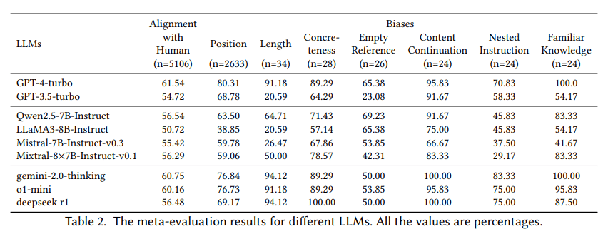 - 人間とLLMの評価は共に偏りを示しており、評価の一貫性と公平性に懸念