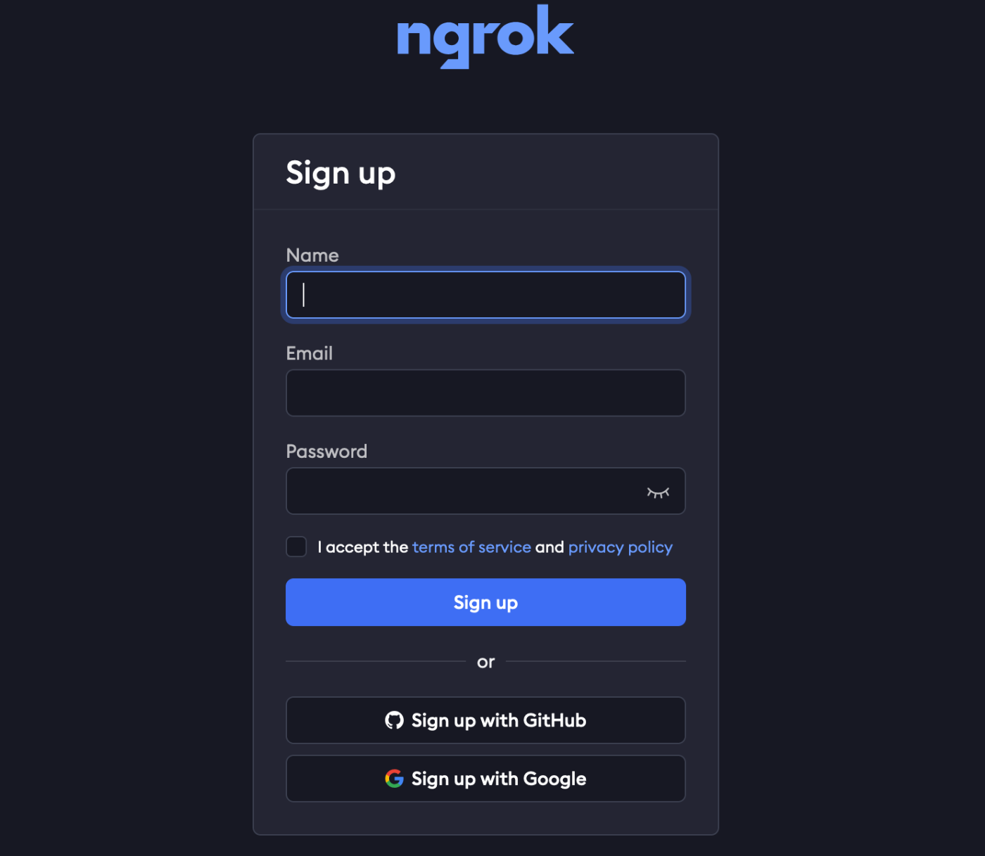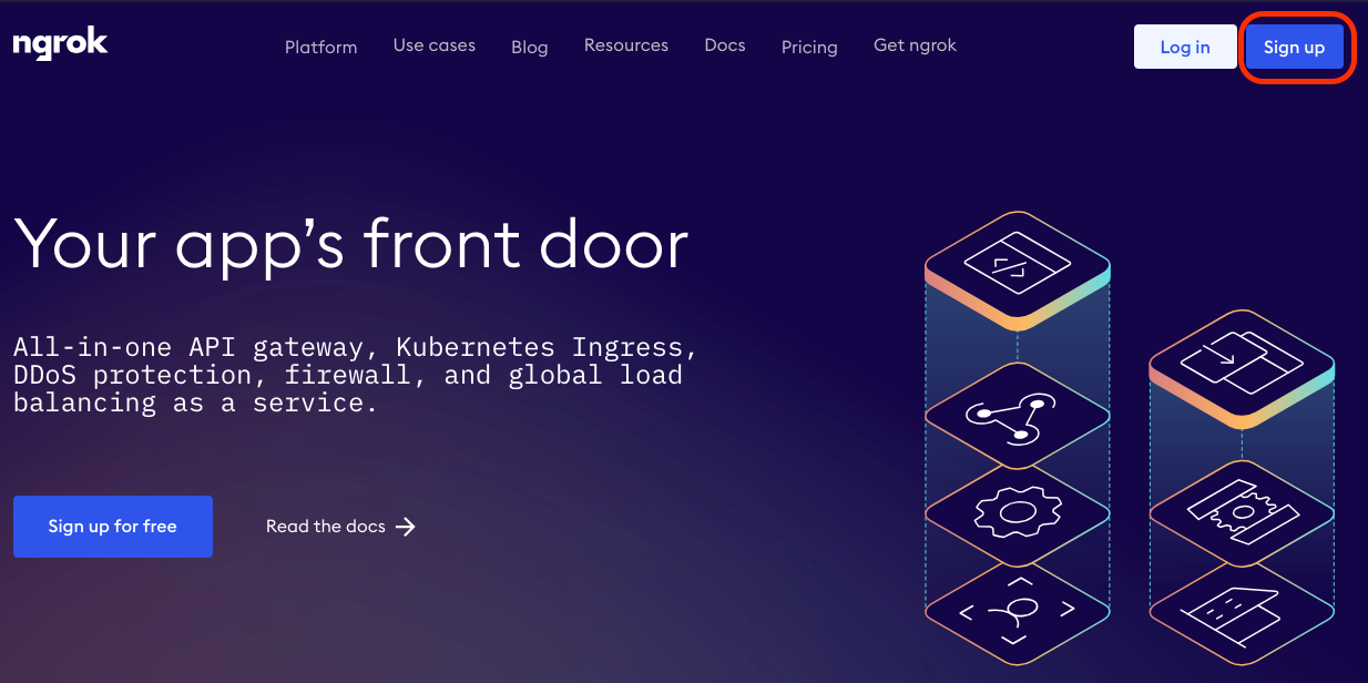 ngrok公式サイトのTOPページ上の右上のSign upボタンから新規登録に進みます。