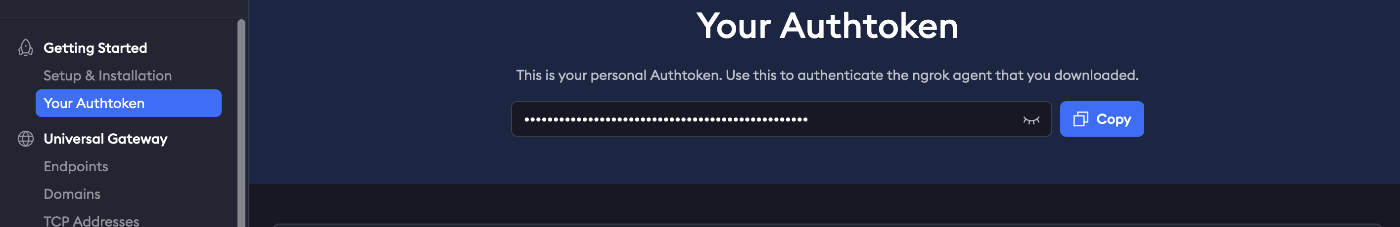 サイドバーのYour Authtokenをクリックし、表示された認証トークンをコピーします。
