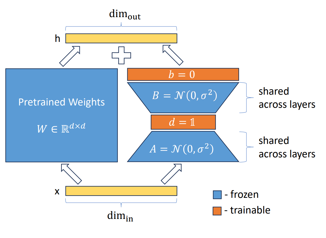 LoRAの派生型PEFT手法であるVeRA: Vector-based Random Matrix Adaptationに関する論文を読んでみたので軽くまとめてみました。