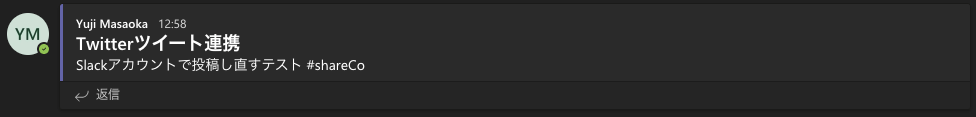 これで Teams コネクタでの設定は完了です。Twitter で新規ツイートがあれば Slack と並行して Teams 側にもメッセージが投稿されるようになります。