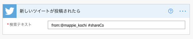 これで、@mappie_kochi による #shareCo のハッシュタグがついた新規ツイートが行われた時に、Power Automate のトリガーが起動するように設定されたことになります。