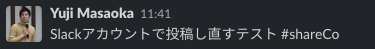 ちなみに、ボットではなくユーザーでメッセージを投稿した場合は以下のようになります。